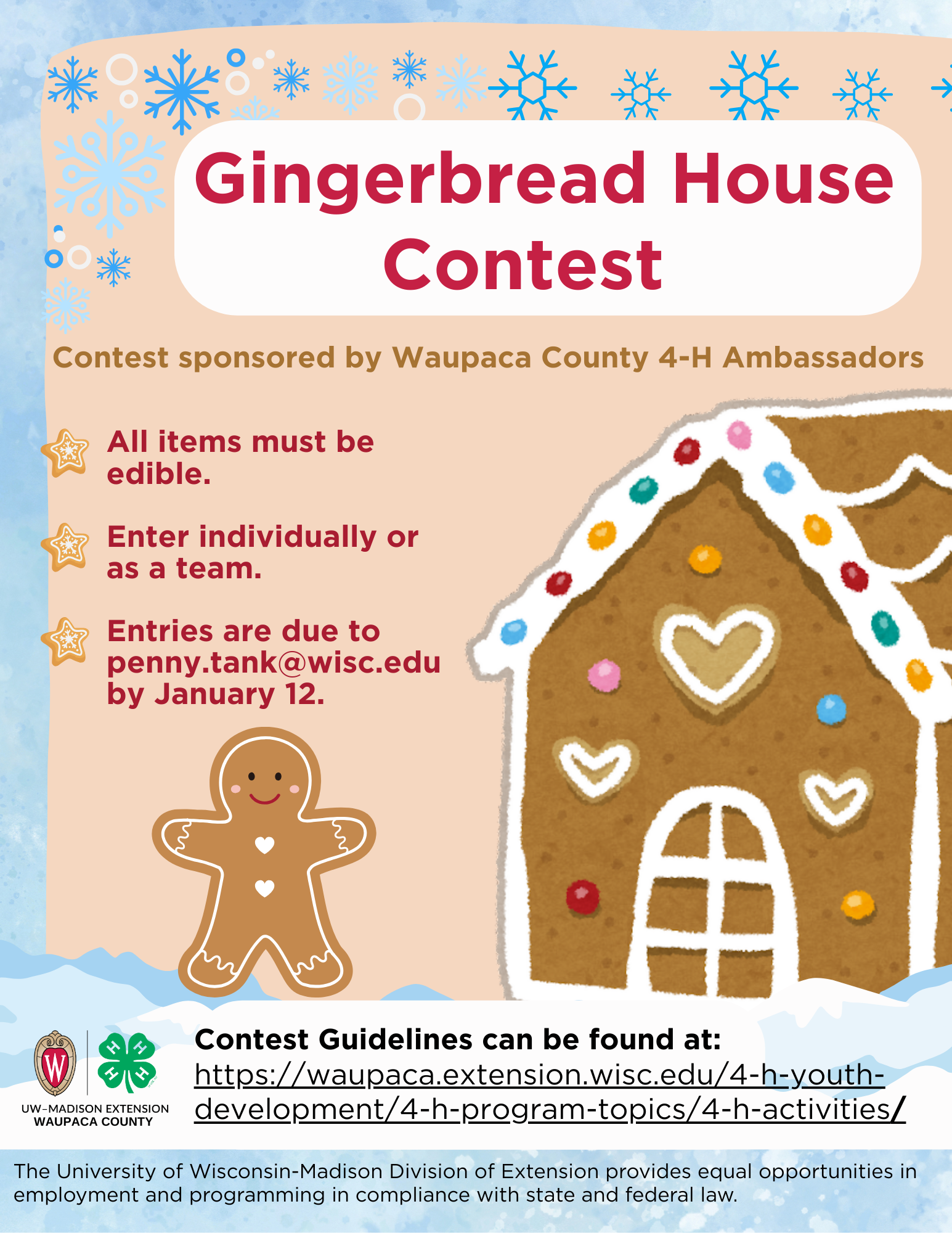 - Gingerbread House Contest – Click flyer for details and linked here are contest guidelines. Due 01/12/26